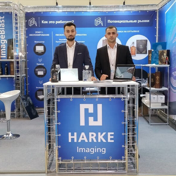 Our story began at a major industry exhibition, where we represented the German company Harke, introducing a complete sandblasting engraving technology. We showcased both photoresist films and professional equipment — everything needed to bring detailed, permanent images onto glass and other hard materials.